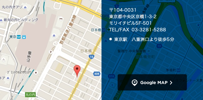 【東京事業所】 〒104-0031 東京都中央区京橋1-3-2 モリイチビル5F-501